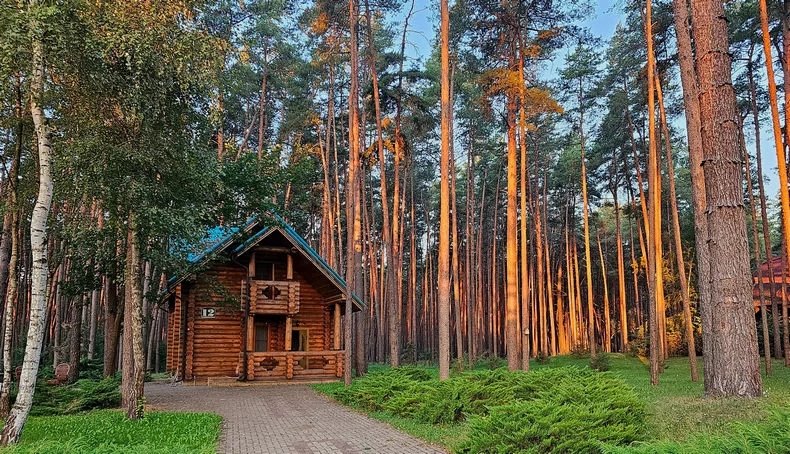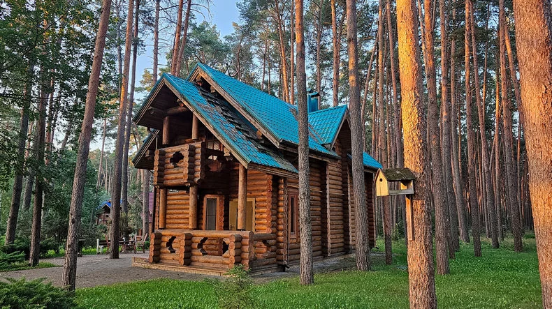 Сам санаторий имеет высокий рейтинг и считается лучшим санаторием области. Кстати, не только белгородской, но и соседних областей тоже. Кроме отдыха здесь, конечно же, можно неплохо поправить здоровье, но так как тема у нас про домики для отдыха, то о лечении поговорим позже. Домиков около 15-ти, они разные по величине, в основном это деревянные срубы. Находятся они чуть в стороне от главного корпуса санатория прямо посреди соснового леса. Ну просто великолепное место!