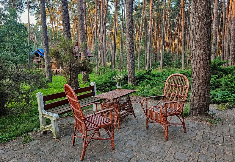 Мы арендуем небольшой двухэтажный сруб площадью 120 кв м. Рассчитан он максимум на 5 человек, две спальни, два санузла, полностью оборудованная кухня и гостиная. Имеется набор обеденной посуды, кастрюли и сковорода. Электрический чайник, само собой прилагается. С водой проблем нет, в доме установлен газовый котел, так что с горячей водой и отоплением никаких проблем. Кстати, хочу напомнить, что в стоимость проживания вкючено четырехразовое питание в ресторане санатория, так что большинству отдыхающих кухонные принадлежности могут и не пригодиться. Есть кондиционер, в каждом домике имеется wi-fi роутер. Телевизор тоже в наличии, но что там доступно из каналов не подскажу, ни разу не включали :) Ну и вишенка на торте - придомовая территория с мангалом и плетеной мебелью. Мы с собой привозим еще и гамак - тоже тема! :)