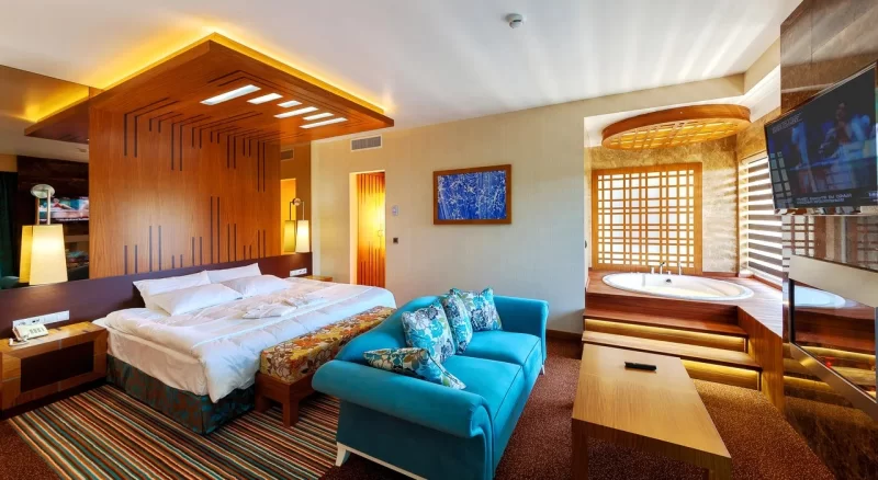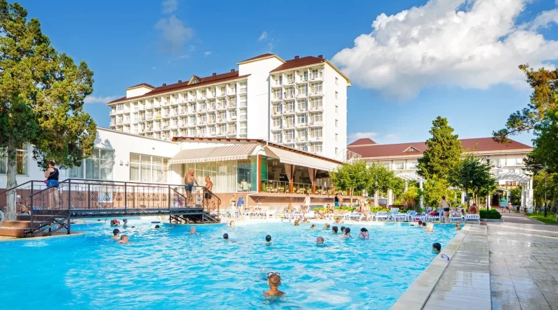 Забронировать можно как проживание в гостинице, так и приобрести санаторную путевку, в стоимость которой будут включены (обязательно уточняйте на сайте при бронировании!) некоторые дополнительные услуги, например, лечение и оздоровительные процедуры. Но при проживании в гостинице вы можете приобрести те же процедуры по льготному тарифу, так что надо смотреть и сравнивать что вам будет выгоднее в каждом конкретном случае.